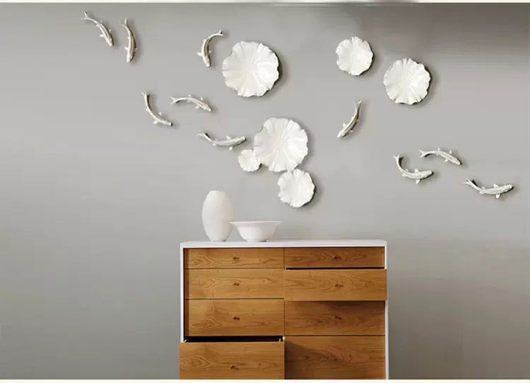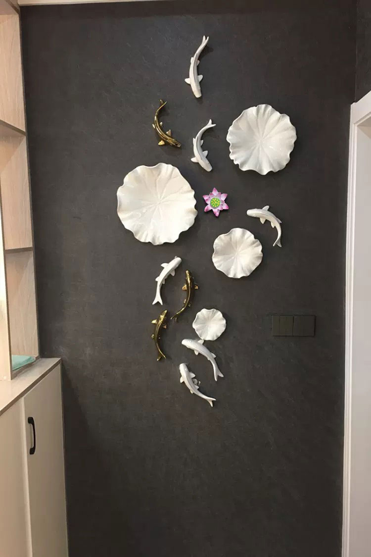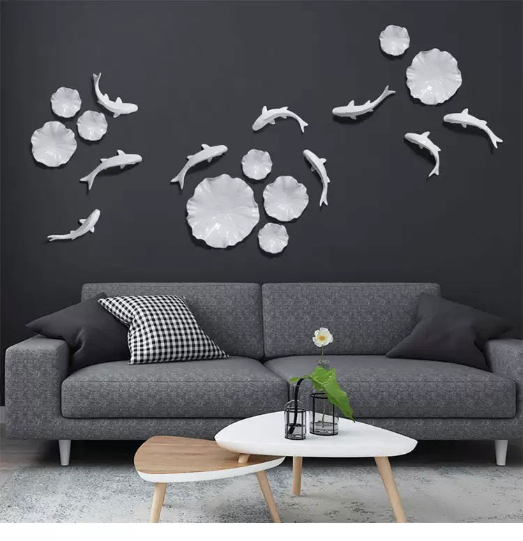 Cá và hoa sen bằng gốm là sự tinh tế cho không gian.