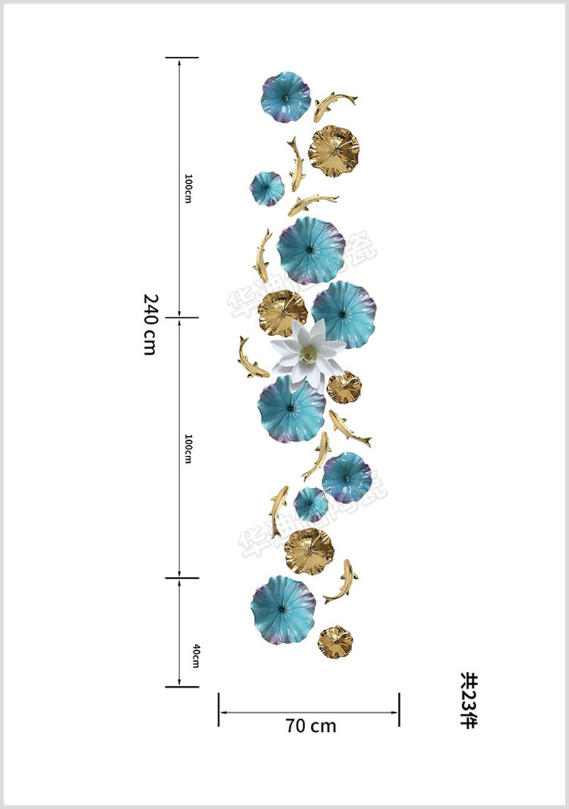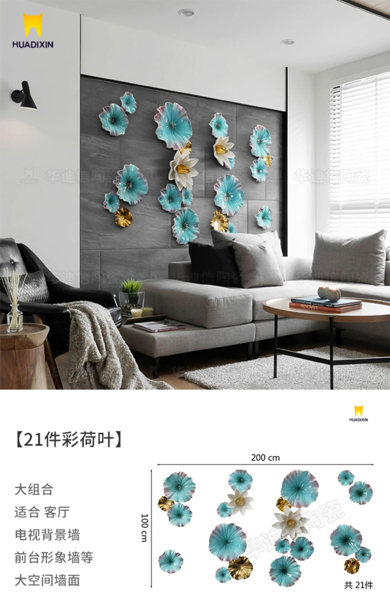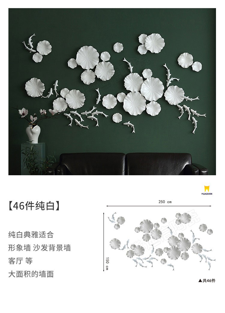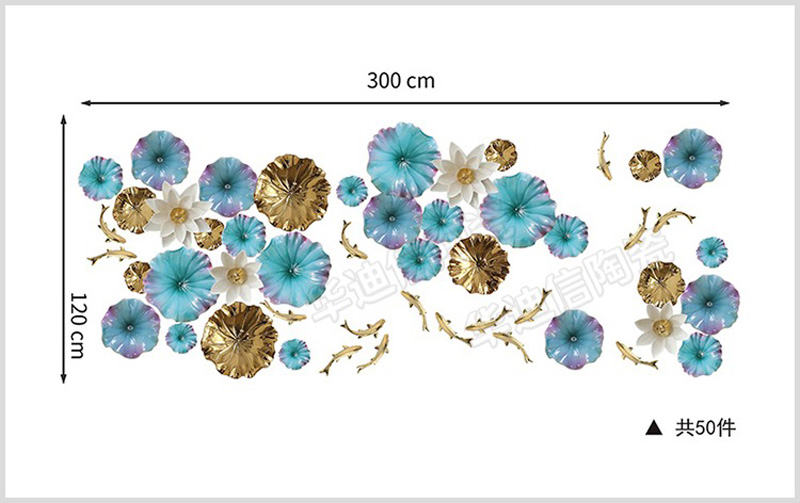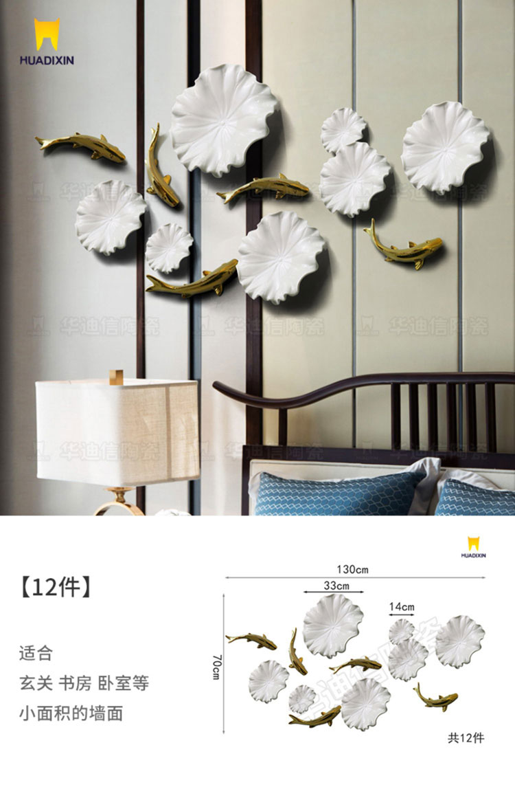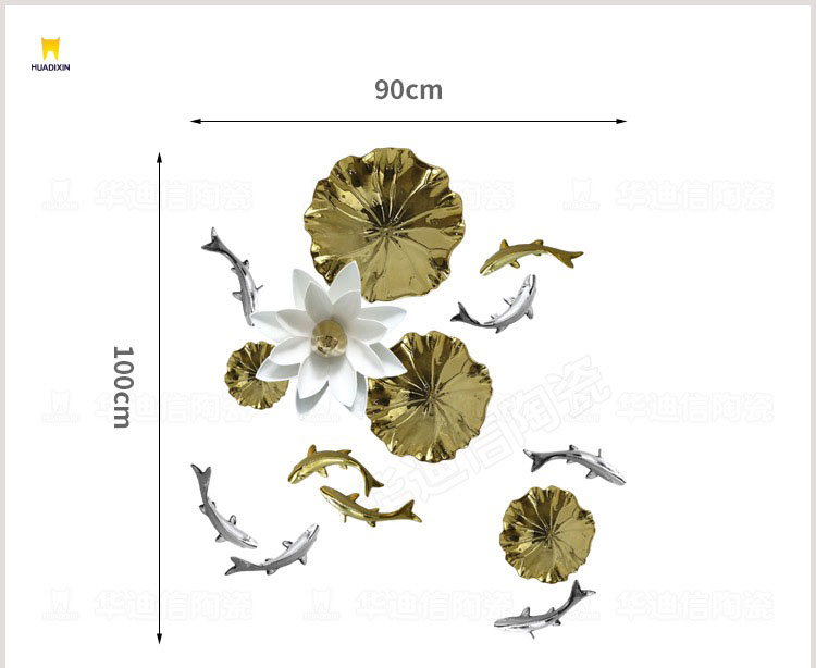 Một bức tranh lá sen và cá trang trí bằng gốm sứ được thiết kế lớn hay nhỏ phụ thuộc vào yêu cầu của khách hàng để vừa với khung tường được trang trí. Nếu dùng trong trang trí nội thất nhà ở thì bức tranh sẽ được dùng để treo trên tường phòng khách, phòng ngủ hay phòng ăn. Còn nếu trang trí ở nhà hàng thì các bức tranh sẽ được treo trang trí các bức tường quanh nhà hàng tùy nhu cầu về thẩm mỹ.